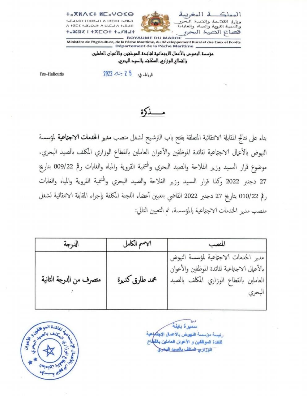 FONDATION POUR LA PROMOTION DES ŒUVRES SOCIALES AU PROFIT DES FONCTIONNAIRES ET AGENTS RELEVANT DU DÉPARTEMENT MINISTÉRIEL CHARGÉ DE LA PÊCHE MARITIME