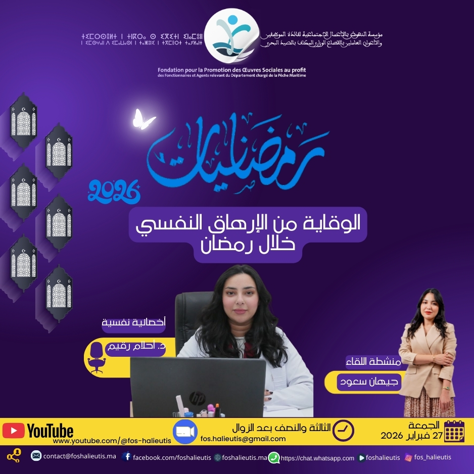 في اطار حرص المؤسسة على تعزيز التوعية الصحية والنفسية والاجتماعية لفائدة منخرطيها واسرهم، وايمانا منها بأهمية المواكبة المعرفية الرصينة خلال شهر رمضان المبارك، تطلق مؤسسة النهوض بالأعمال الاجتماعية لفائدة... Lire la suite