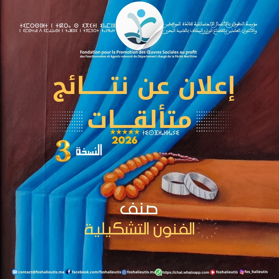 بمناسبة اليوم العالمي للمرأة، نظمت مؤسسة النهوض بالأعمال الاجتماعية لفائدة الموظفين والأعوان العاملين بالقطاع الوزاري المكلف بالصيد البحري النسخة الثالثة من جائزة متألقات 2026 في صنف الفنون التشكيلية، وذلك... Lire la suite