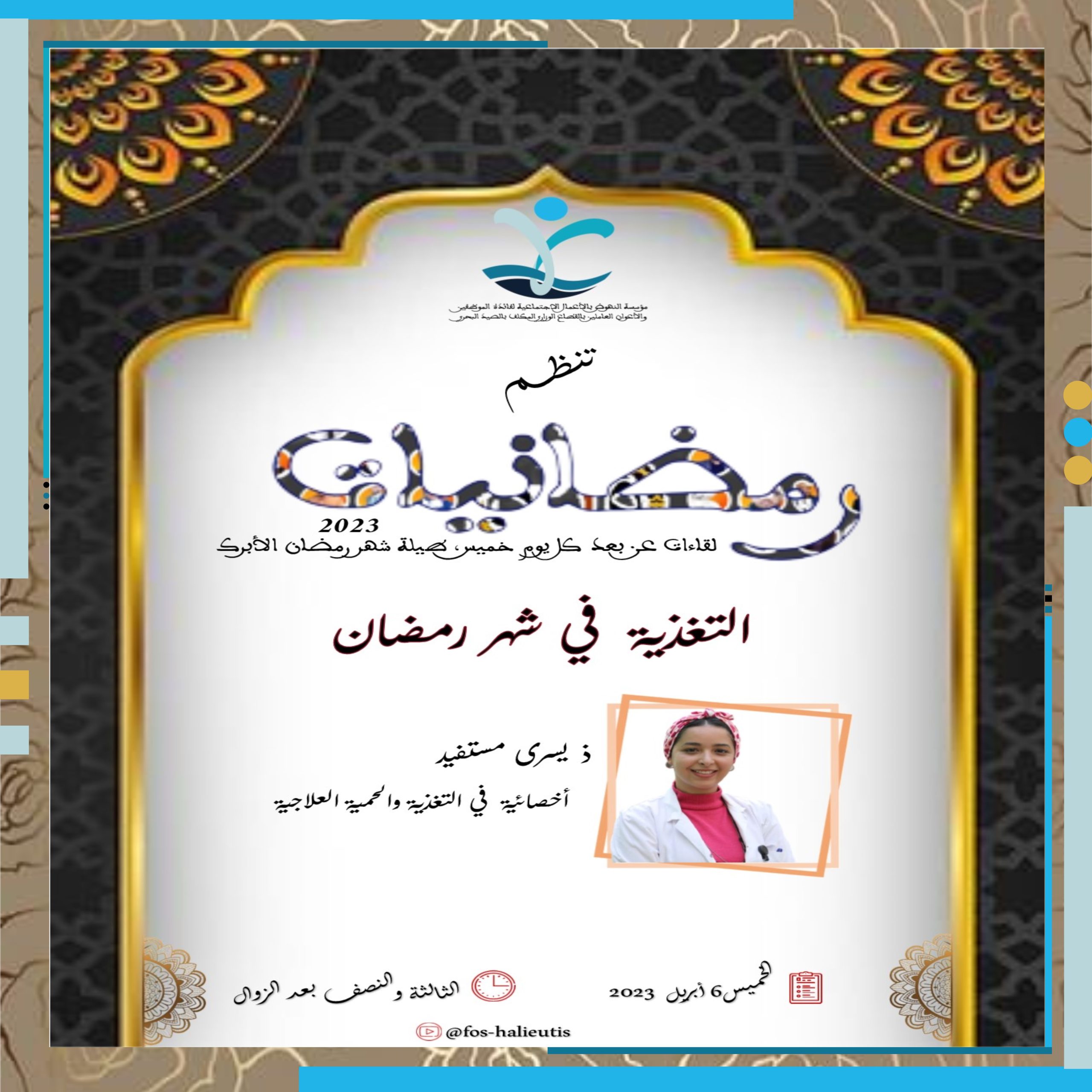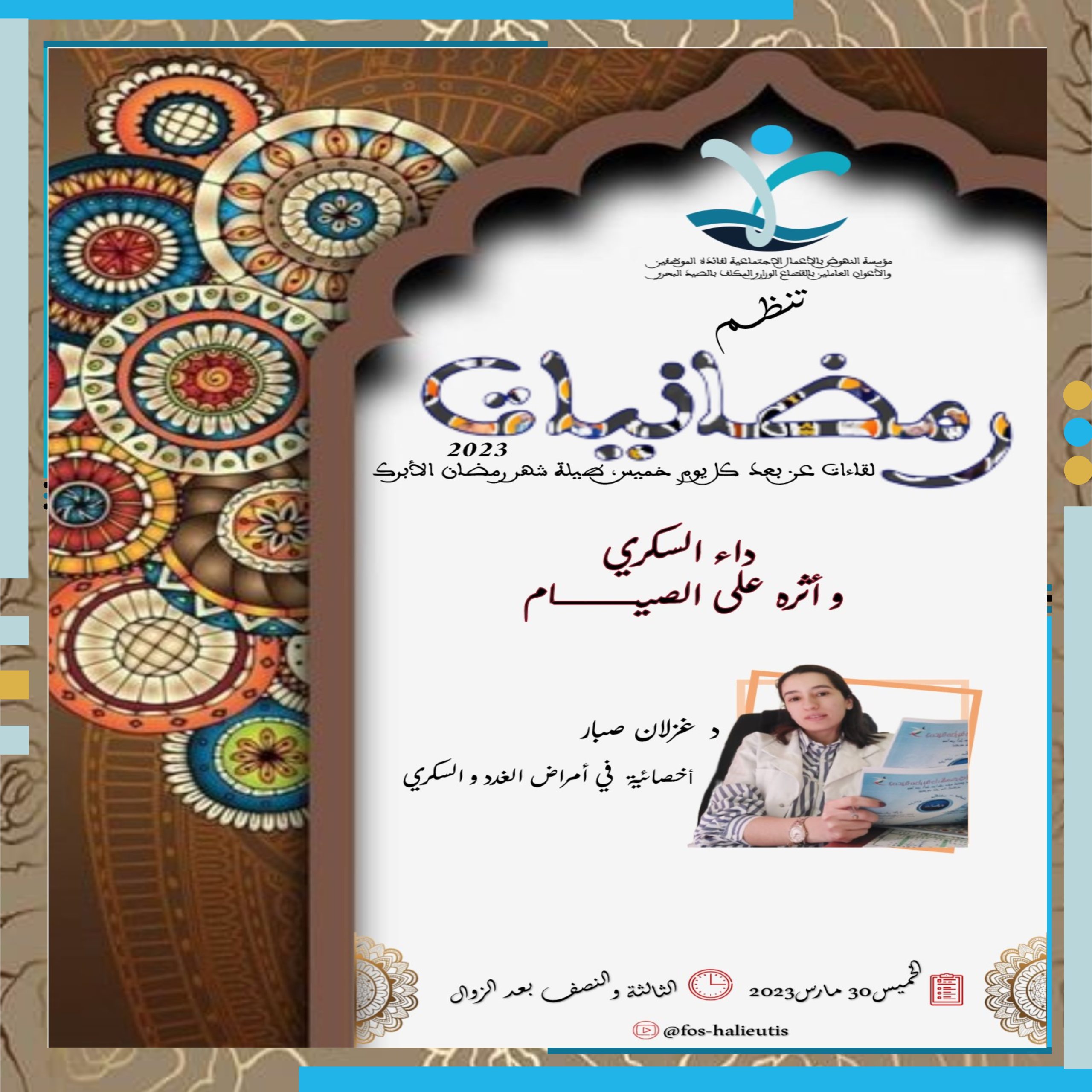 2023 رمضانيات يستضيف برنامج رمضانيات يوم الخميس 30مارس 2023 في أولى حلقاته الدكتورة غزلان الصبار أخصائية في أمراض الغدد والسكري للحديث عن داء السكري و أثره على الصيام 👇للإطلاع... Lire la suite